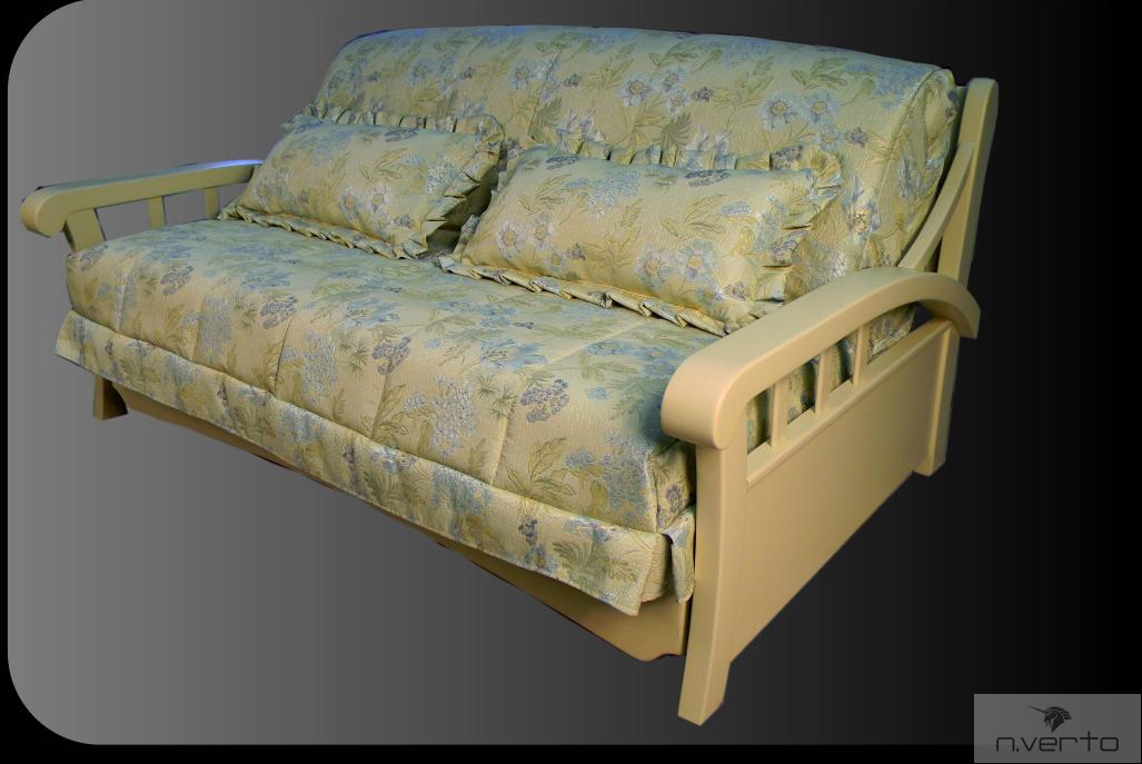 Каркас дивана выполнен из массива кавказского бука. Наполнение - 3-ех слойное ППУ, благодаря которому спальное место заменяет полноценную кровать. В сложенном виде комфортность посадки дивана: жесткая.