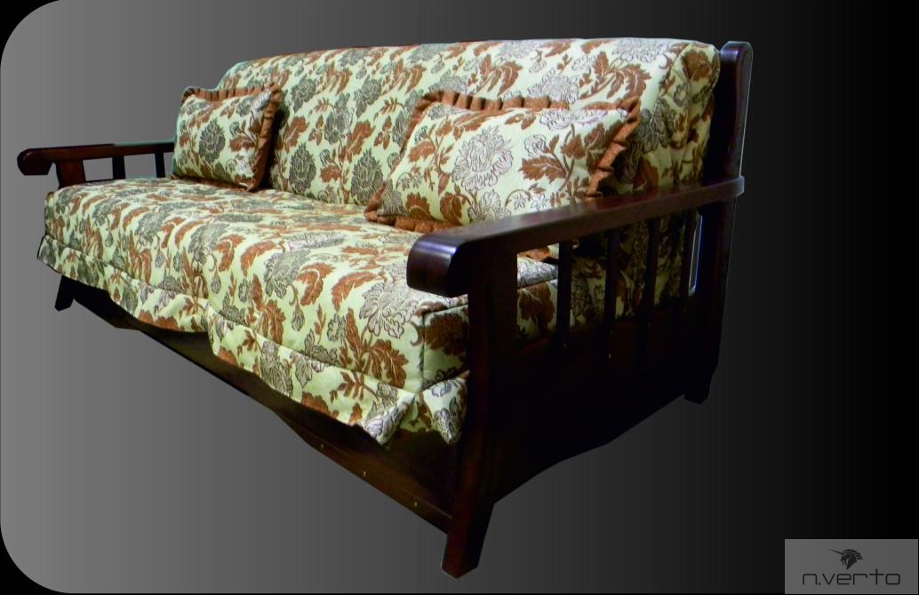 Каркас дивана выполнен из массива кавказского бука. Наполнение - 3-ех слойное ППУ, благодаря которому спальное место заменяет полноценную кровать. В сложенном виде комфортность посадки дивана: жесткая.