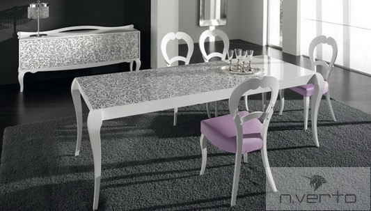 Cтол «Nizza» итальянской фабрики «IdealSedia» .  Фабрика «IdealSedia» знаменита во многих странах мира благодаря широкому ассортименту качественной мебели и аксессуаров. Фабрика специализируется на изготовлении обеденных зон из стекла, металла, дерева, пластика и других материалов. В качестве обивки для столешниц и посадочных мест стульев используется ткань, кожа, экокожа различных цветовых решений.